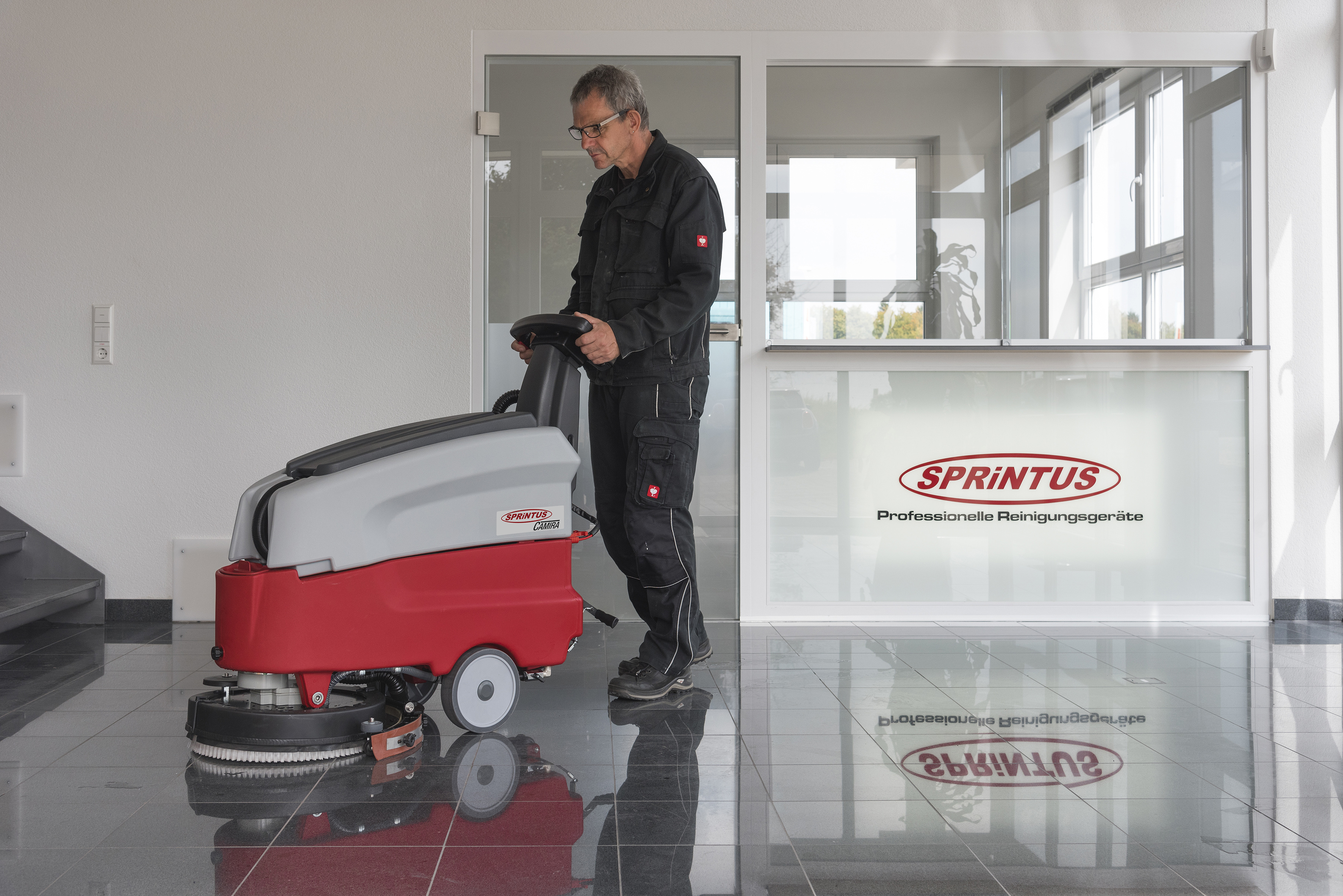Batteriebetriebene, 15 Liter, 24V Scheuersaugmaschine. Für kleinere bis mittelgroße Flächen. Flächenleistung ca. 1.260 m²/h.