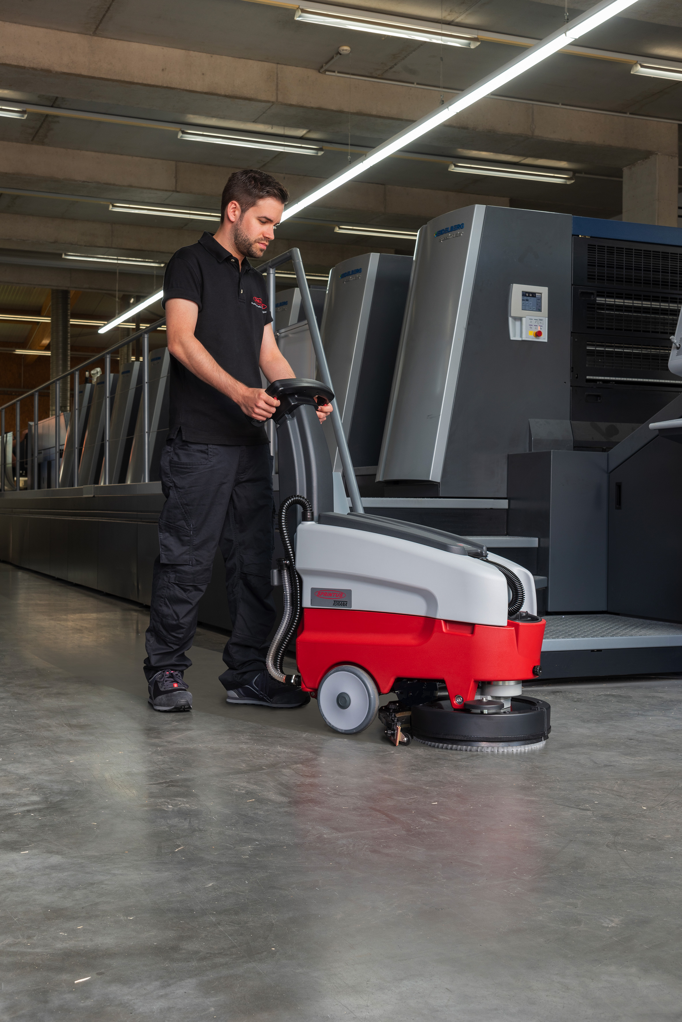 Batteriebetriebene, 32 Liter, 24 V Scheuersaugmaschine. Ideal für mittelgroße Flächen bis zu einer Größe von 1.600 m².