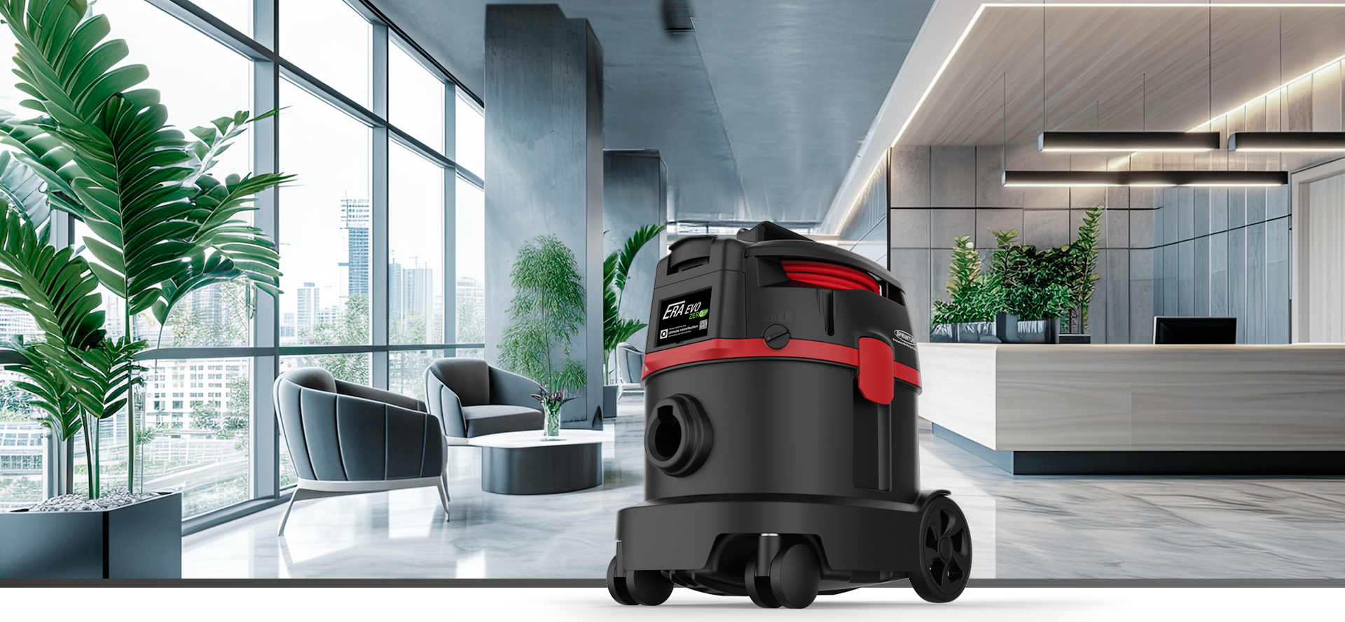 Der leise ERA EVO ZERO ist vielseitig einsetzbar, kompakt, zuverlässig und ein wahres Kraftpaket. Die integrierte Kabelaufwicklung ermöglicht das sichere und praktische Verstauen des signalroten 10 m Netzkabels.