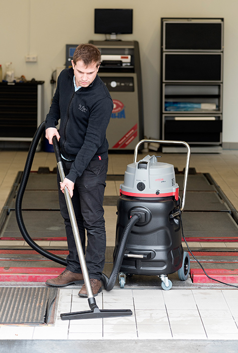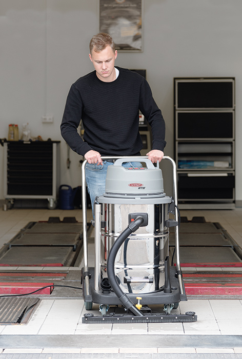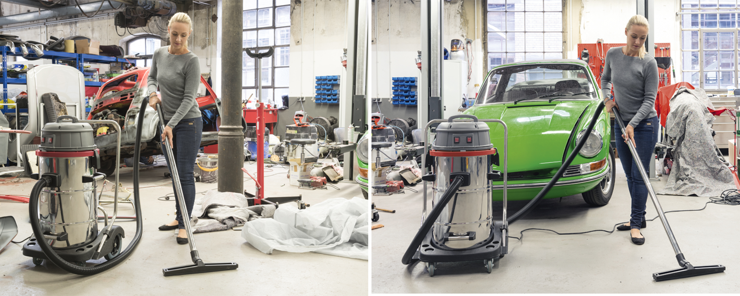 This 55-litres stainless steel wet/dry vacuum from our new Ketos product line is bursting with strength. The in series connected high performance motors attain a suction power of 300 mbar at a volume fl ow of 70 litres/sec. per motor.