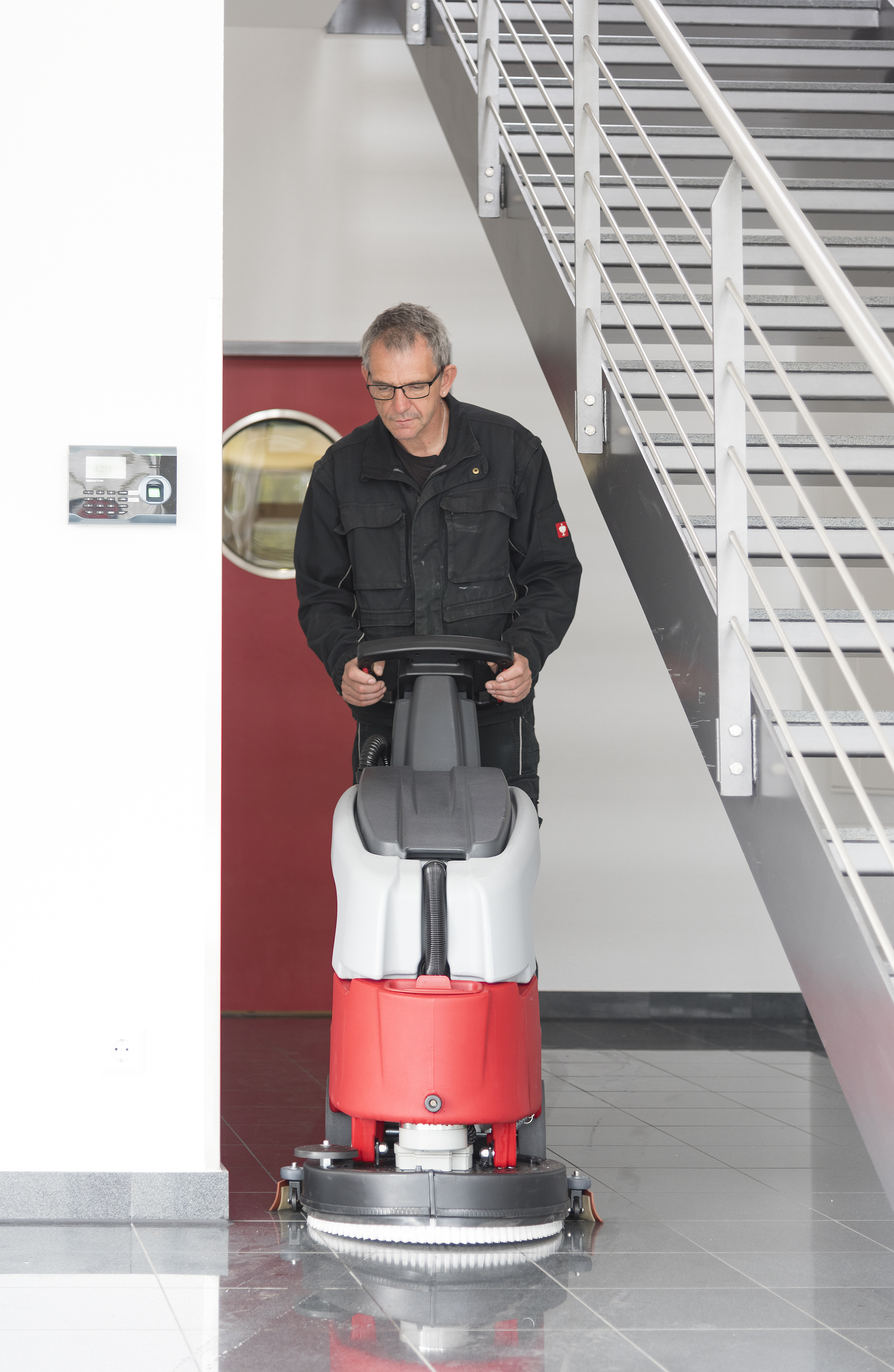 Autolaveuse, 15 Liter, 24V, alimentée par batterie. Pour des surfaces de petite et moyenne taille. Rendement surfacique d'environ 1.260 m²/h.