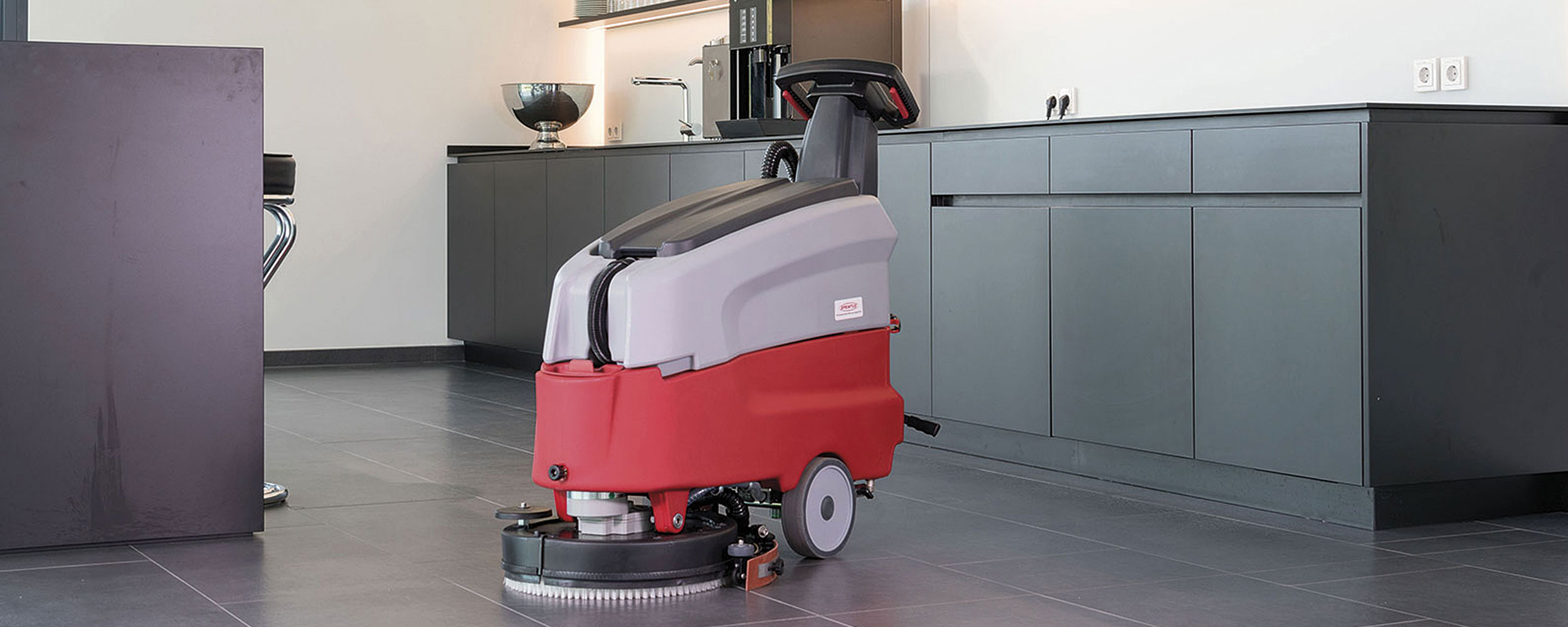 Autolaveuse, 32 Liter, 24 V, alimentée par batterie. Idéale pour des surfaces moyennes d'une taille jusqu'a 1.600 m².
