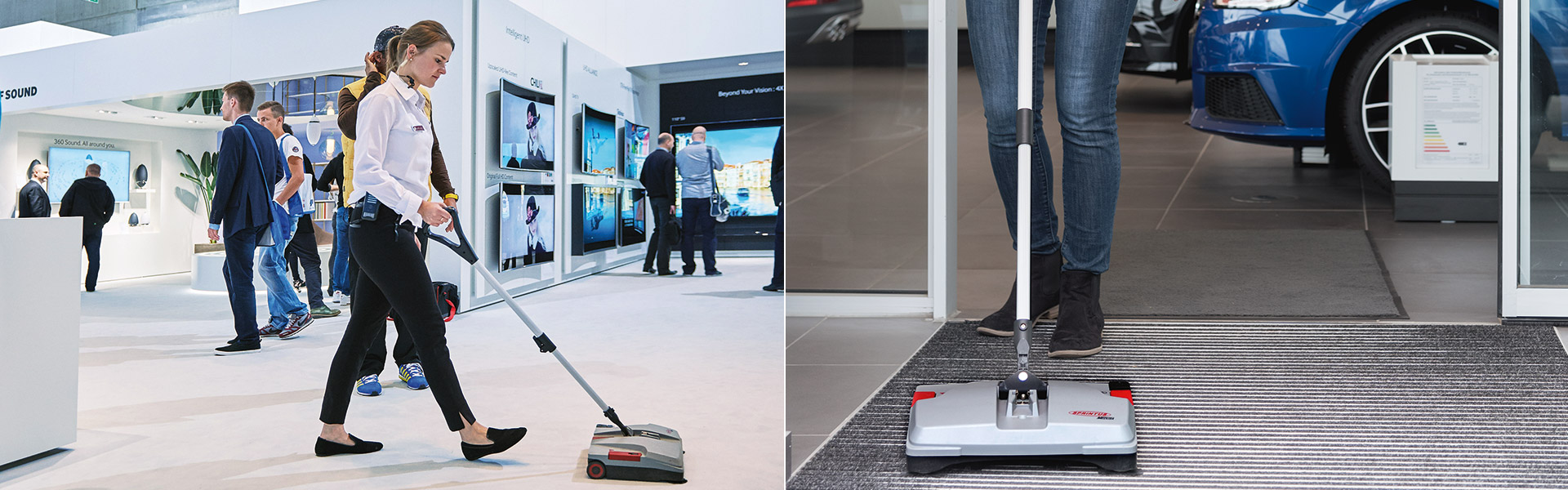 Le Medusa est un balai mécanique à batterie rechargeable destiné à un usage professionnel. Sa largeur est de 37 cm et il possède deux brosses rotatives latérales. Le balai attrape sans problème des objets pouvant faire jusqu’à 2 cm de diamètre et 24 cm de long. Compact et léger, le Medusa convient également pour les endroits difficiles d’accès. Les balais latéraux permettent également d’attraper toutes les saletés dans les coins et assure un nettoyage dans les moindres recoins.