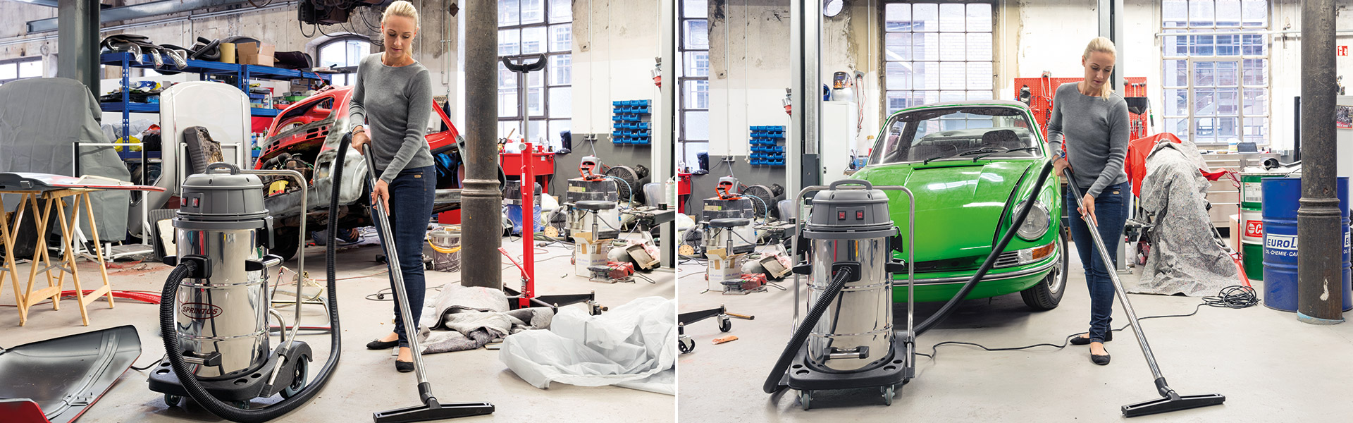 Un aspirator robust din oțel inoxidabil, umed-uscat, pentru utilizare zilnică intensă. Prin folosirea cartușului de filtru de praf fin, a coșului de filtru din lână și a duzelor auxiliare de suprafață umedă și uscată, se atinge o suprafață impresionantă. Cu două turbine reglabile individual și rezervele lor mari de putere, aspiratorul este capabil de puterea de aspirație adecvată pentru fiecare situație. Datorită coșului filtrant din material textil și a cartușului filtrant pentru particule fine se obține o calitate foarte bună a aerului evacuat. Roțile acoperite cu cauciuc asigură o muncă fără probleme chiar și pe suprafețe sensibile. Aspiratorul poate fi folosit și fără sac textil.