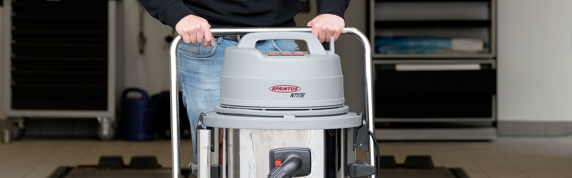 Sistemul triplu de filtrare, compus din cartuș filtrant, coș filtrant textil și sac textil multistrat de 50 litri, asigură curățarea foarte bună a aerului evacuat. Aspiratorul poate fi folosit și fără sac texil. Echipament profesional pentru curățenie foarte eficient datorita talpilor de aspirare pentru praf și pentru lichide cu lățimea de 450 mm. Periile pentru praf și lamelele din cauciuc se înlocuiesc ușor când se uzeaza, fără scule speciale. Funcția de înclinare a cuvei din oțel inoxidabil asigură golirea ușoară și rapidă a apei reziduale.